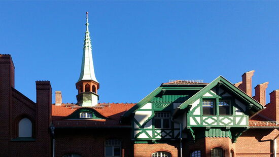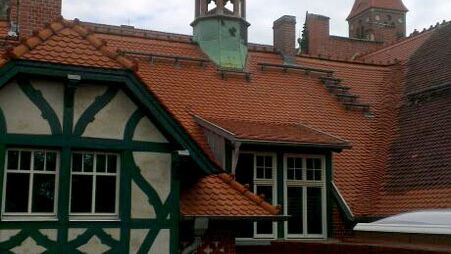 Das E-Werk am Spreeufer 1 in Cottbus ist ein einmaliges Industriedenkmal, welches in der Zeit von Ende 2012 bis 2014 aufwendig, nach Auflagen des Denkmalschutzes, durch die Firma Böhm Bedachung saniert wurde.