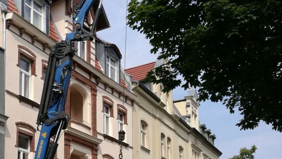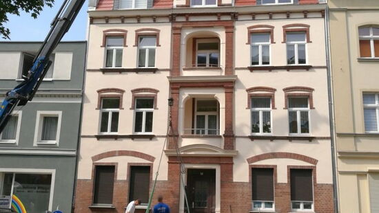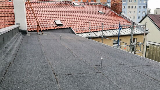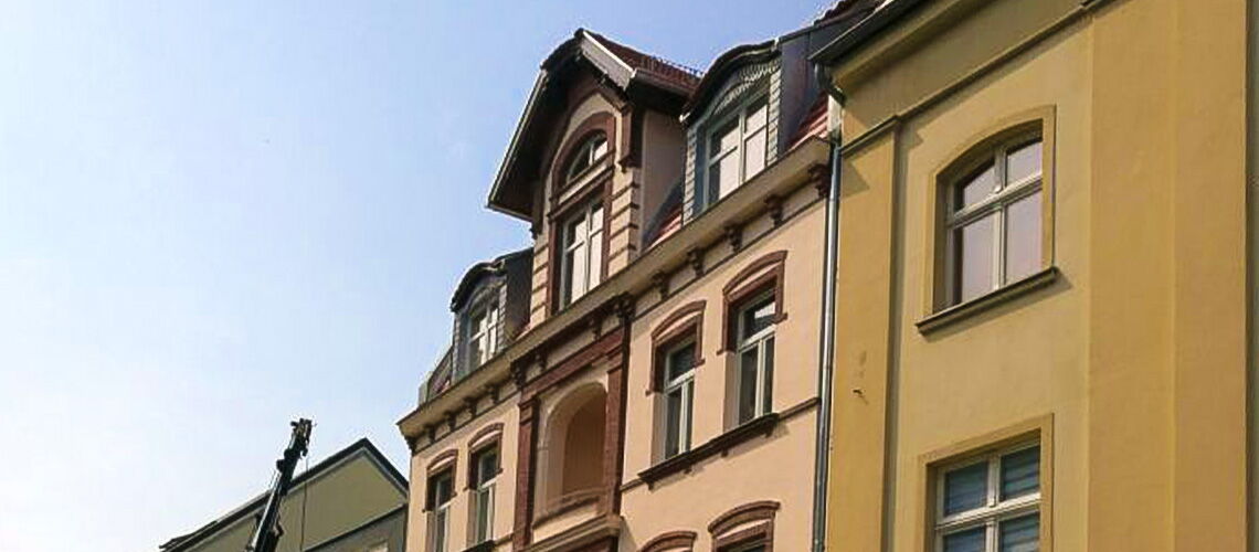 Aufwendige Dachstuhlsanierung eines Mehrfamilienhauses in der Lieberoser Straße, Cottbus.