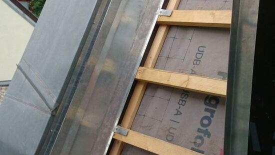 - Verkleidung stehende Gauben in Winkelstehfalztechnik und Naturschiefer