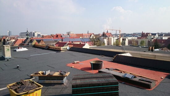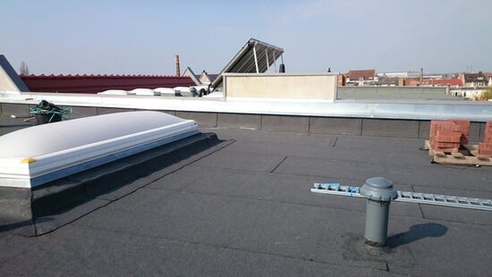 - Warmdachpaket mit hochwertiger 2.-lagigen Bitumenabdichtung auf PIR.-Dachdämmung Fabrikat: Bauder