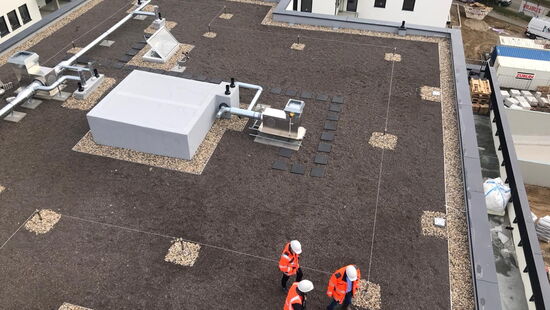 - 2.650 qm Warmdachpaket mit FPO Abdichtung, Dachflächen und Terrassen