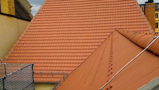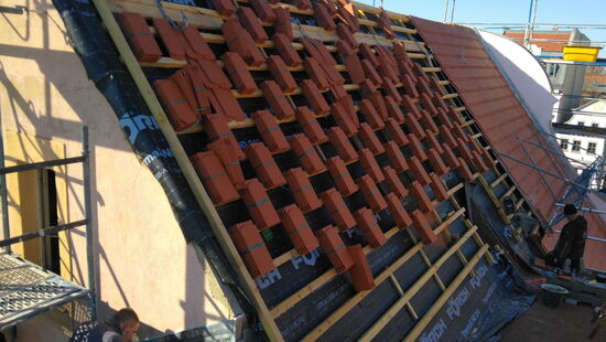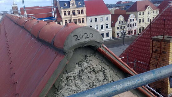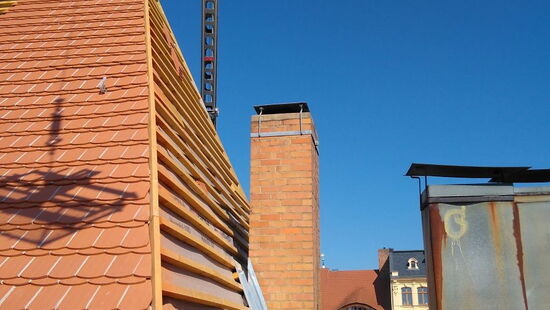 - traditionelle Biberschwanzeindeckung in Mörtel