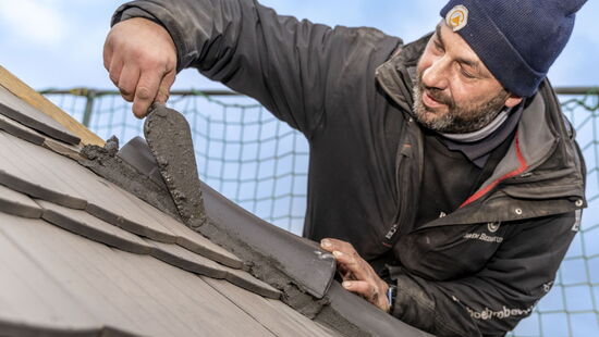 - traditionelle Dacheindeckung nach Auflage Denkmal in Mörtel mit Querschlag und Fuge