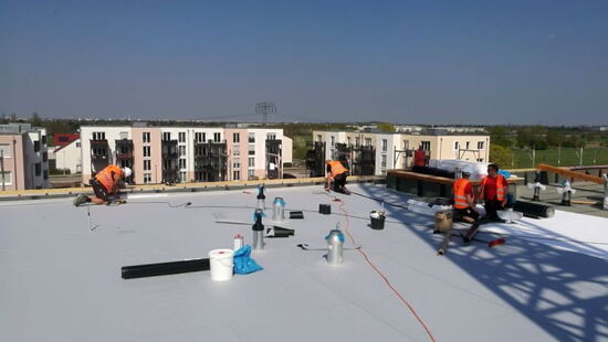- 6.500 qm Warmdachpaket mit FPO Abdichtung