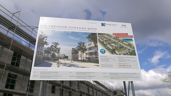 Die Theodor-Fontane-Höfe entstehen im Dichterviertel Neu-Schönefelds an der Theodor-Fontane-Allee Ecke Rudower Chaussee. Das Grundstück liegt nördlich des Flughafens Schönefeld und an der südlichen Stadtgrenze Berlins außerhalb der Lärmkorridore des Flughafens. Auf dem Grundstück mit mehr als 23.000 Quadratmetern werden zwölf viergeschossige Mehrfamilienhäuser mit 334 Wohnungen gebaut.