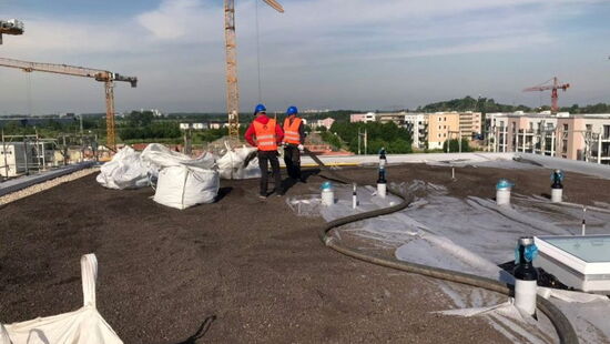 - Bituminöse Dampfsperre mit Aluminiunmeinlage und Verlegung Gefälle-Dachdämmung EPS